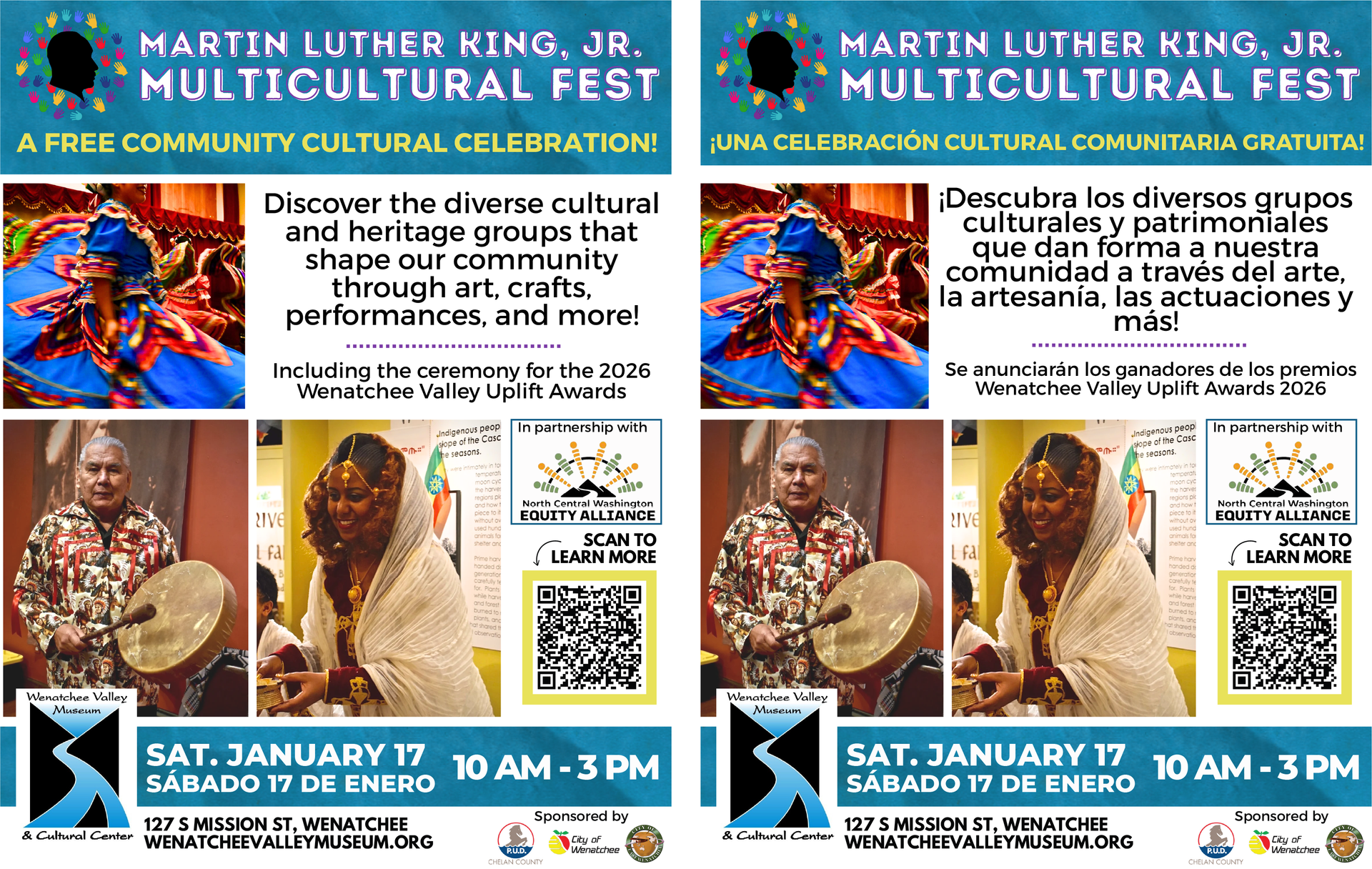 Sponsoring and Co-sponsoring events that celebrate the rich diversity of the North Central Washington area is a way to bring people together and create a “safe” environment for talking about and celebrating our diversity. NCW Equity Alliance has partnered with the Wenatchee Valley Museum & Cultural Center to celebrate the Martin Luther King Jr. Multicultural Fest; the Wenatchee area Pride Festival; Fiestas Mexicanas; Hiking for Health; and much more.